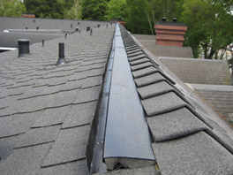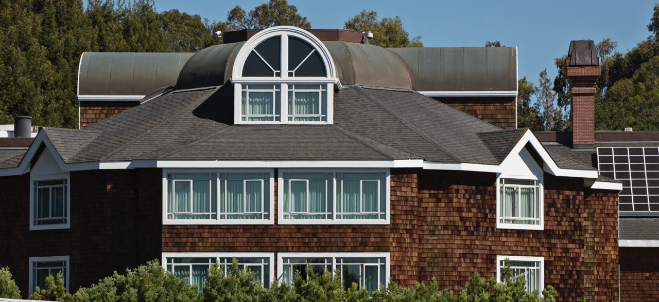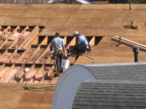 Some of the areas did not have adequate intake and some had no air space above the insulation at areas that were covered by a cathedral ceiling. Vapor drive caused extensive dry rot. Additional intake ventilation was installed and a 1-inch air space was created above the insulation to achieve proper air flow, which resulted in elimination of the vapor drive problem. The solution also vented the attic space correctly, which kept the inside space cooler, reduced air conditioning costs, and qualified the roof for the manufacturer’s long-term warranty.