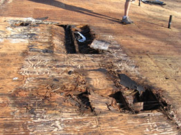 structure, we informed them it was not a roof leak–Rather a design flaw – inadequate ventilation coupled with “vapor drive” (Moisture vapor will naturally move from the warm side of a wall to the cooler side) causing dry rot in the building.